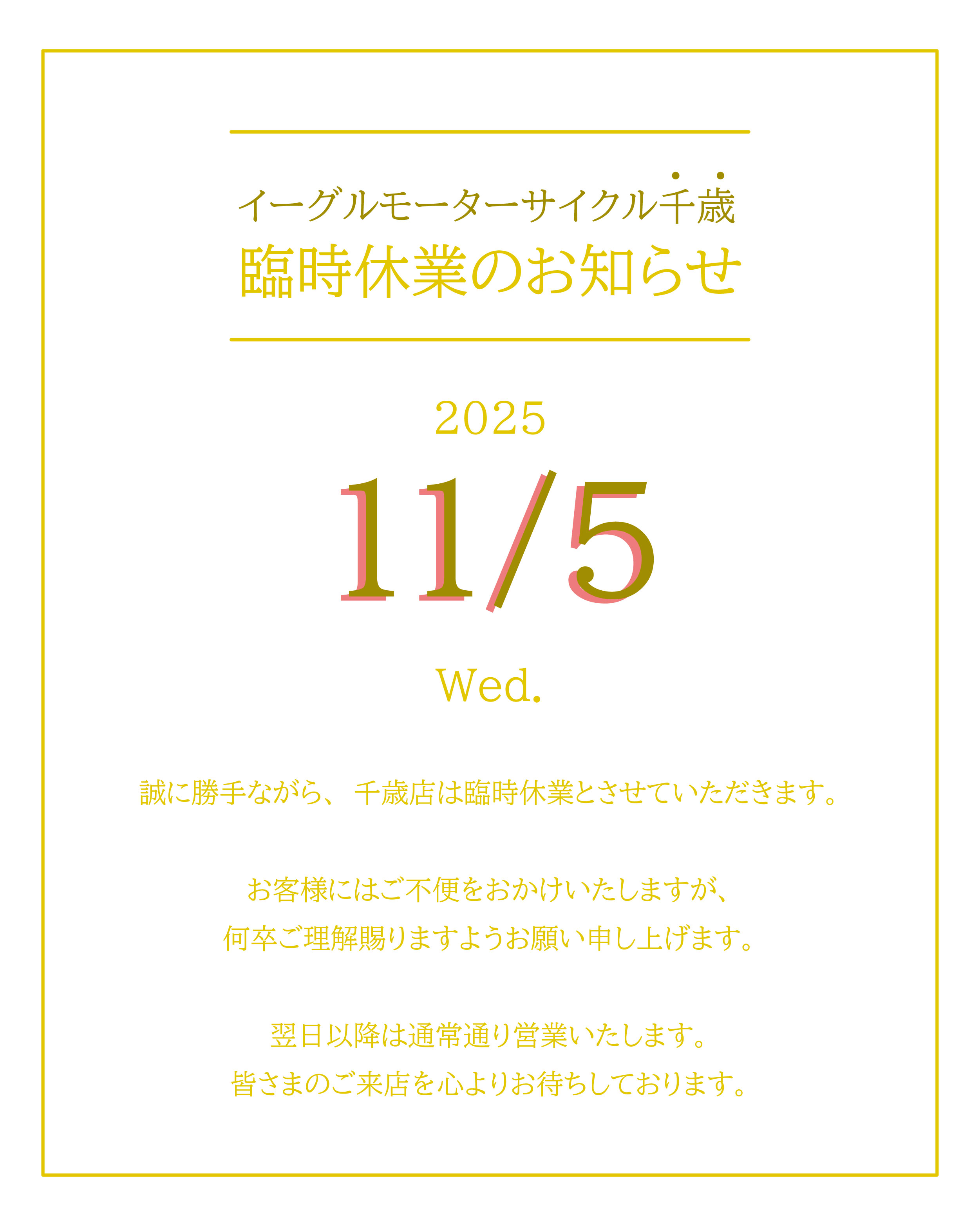 誠に勝手ながら、千歳店は臨時休業とさせていただきます。