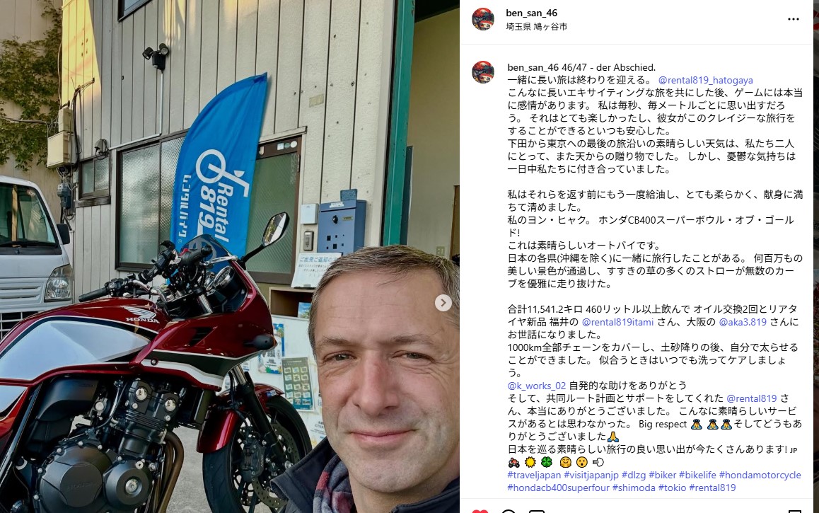 ドイツから『日本一周レンタルバイク』のベンジャミンさん完走されました!!