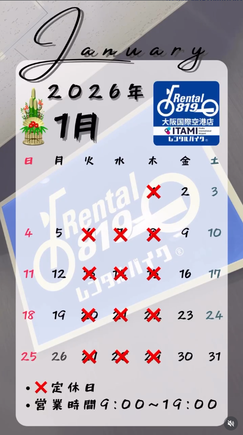 🛫🏍️1、2月営業日は変則的です。ごめんなさい🏍️🛫