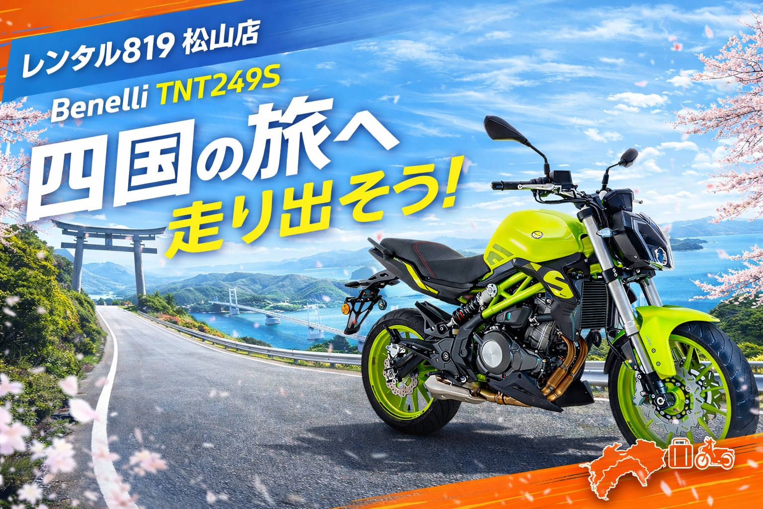 Benelli TNT249Sは、現時点ではレンタル819松山店でご利用いただけるレンタルモデルです。