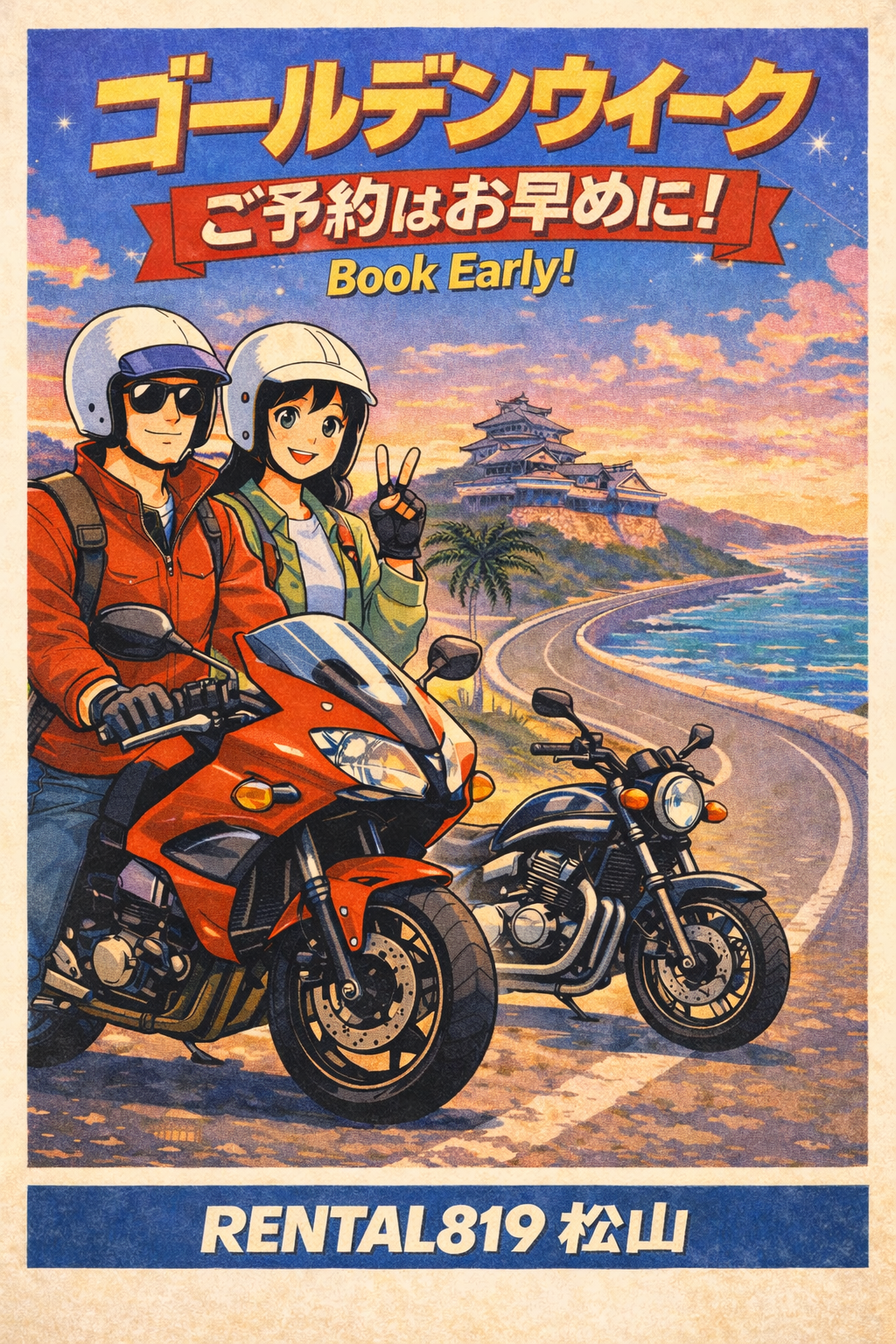 毎年この時期は、四国ツーリングや観光を目的としたご利用が増え、人気車両から順に予約が埋まっていきます。