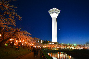 五稜郭タワーから見るのもよし、また五稜郭公園の周りを歩きながらもよし、夜もライトアップ