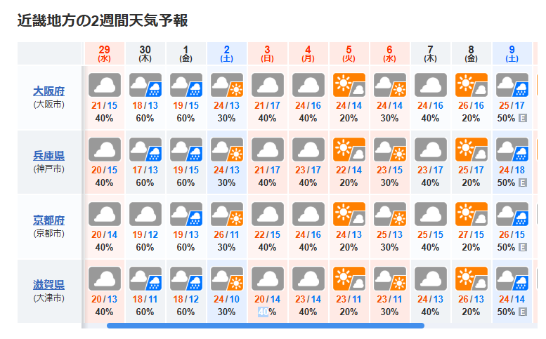 - GW前半(4/29~5/3):天気が変わりやすい