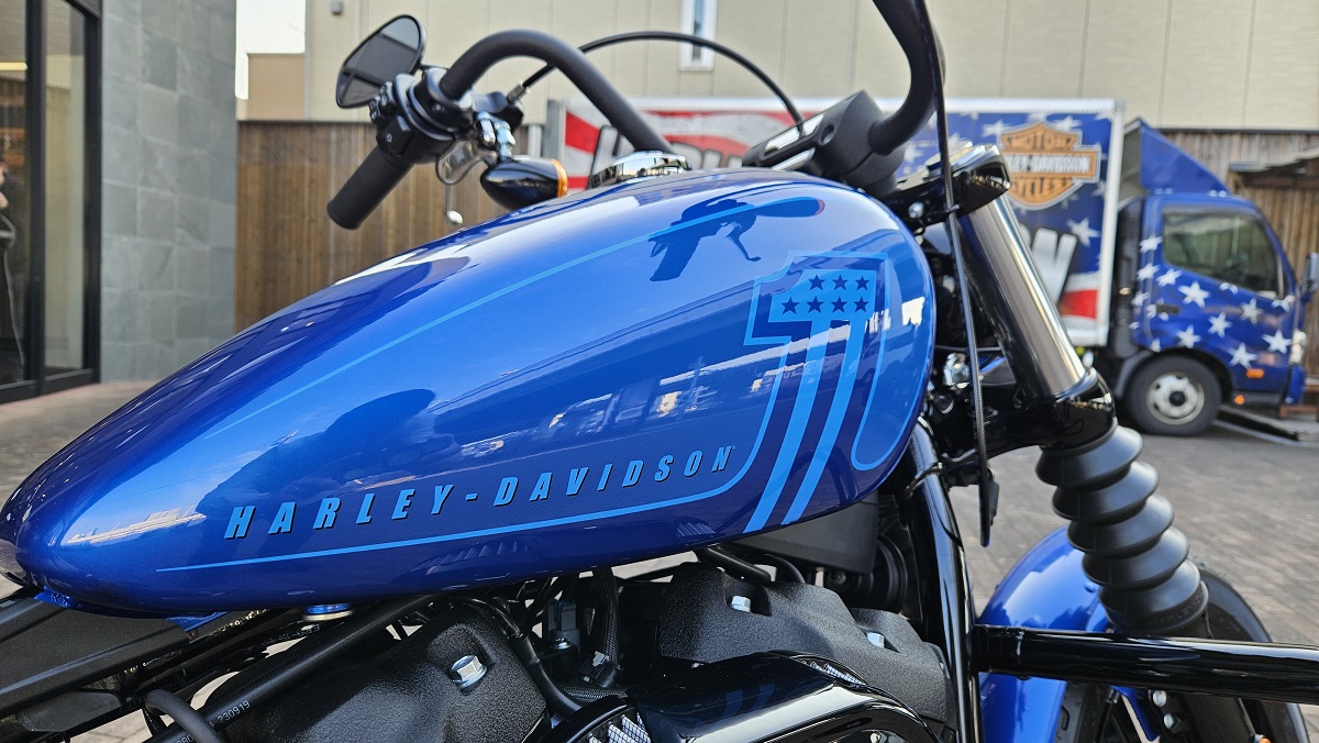 現行のソフテイルモデルの中でも特徴的な「ボバー」スタイルの1台。