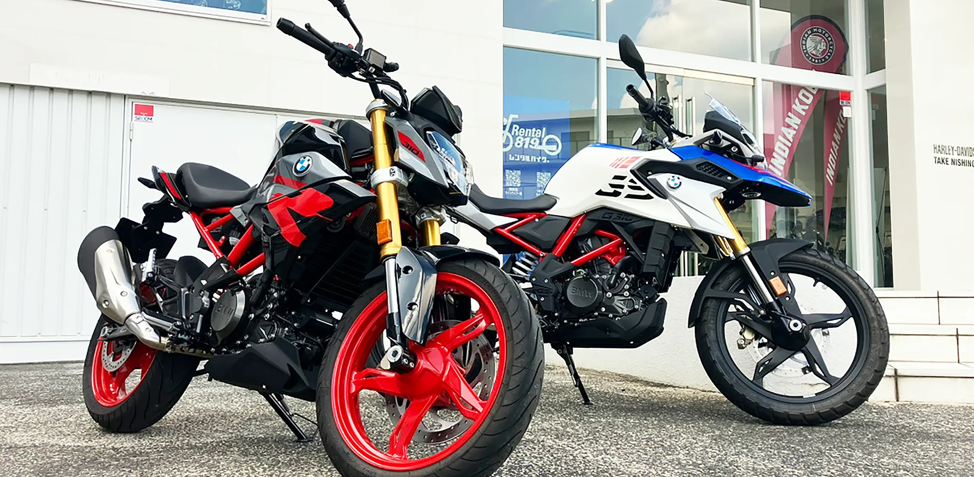 最初に紹介するのは、BMW G310GSとG310Rの2台です。どちらも同じBMWの中型モデルです。G310GSはアドバンチャーモデルでG310Rはロードスポーツモデルです。どちらも水冷単気筒4ストロークエンジン、排気量312cc、最高出力25 kW(34 PS)/ 9,250 rpmのエンジンを搭載して、仕様の違いでアドベンチャーモデルとロードスポーツモデルの違いを出しています。人気はG310GSの方が人気はあると思います。