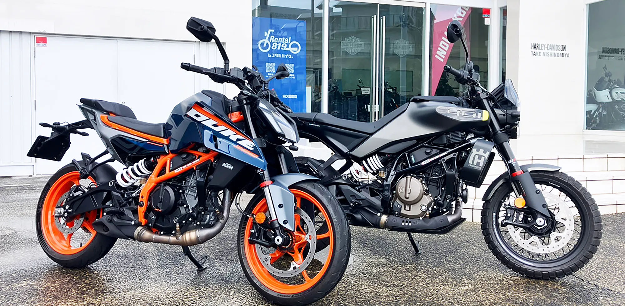 その次に紹介するのは、オーストラリアのKTM 390DUKEとスウェーデンのハスクバーナ スヴァルトピレン401です。全く違う国のバイクですが、同じKTMグループです。KTM 390DUEKとスヴァルトピレン401は、パワーユニット、フレーム、足回りを共有モデルです。390DUKEとスヴァルトピレン401が兄弟というより似ても似つかない双子モデルと知っている人は多くないと思います。同じパワーユニット、フレーム、足回りが同じでもタイヤの違いでも、乗り味は大きく変わりますので、一度 この2台の違いを体験して下さい