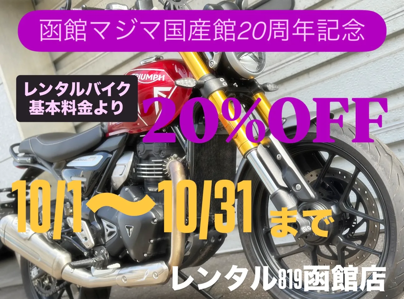 20周年を記念してレンタルバイク基本料金より20%OFFセール開催!!