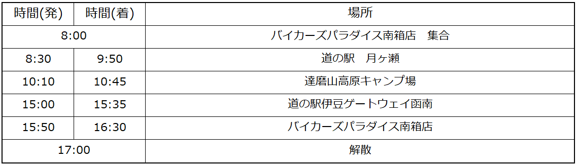 ①バイカーズパラダイス南箱根店に参加希望の電話をする→0460-83-5819